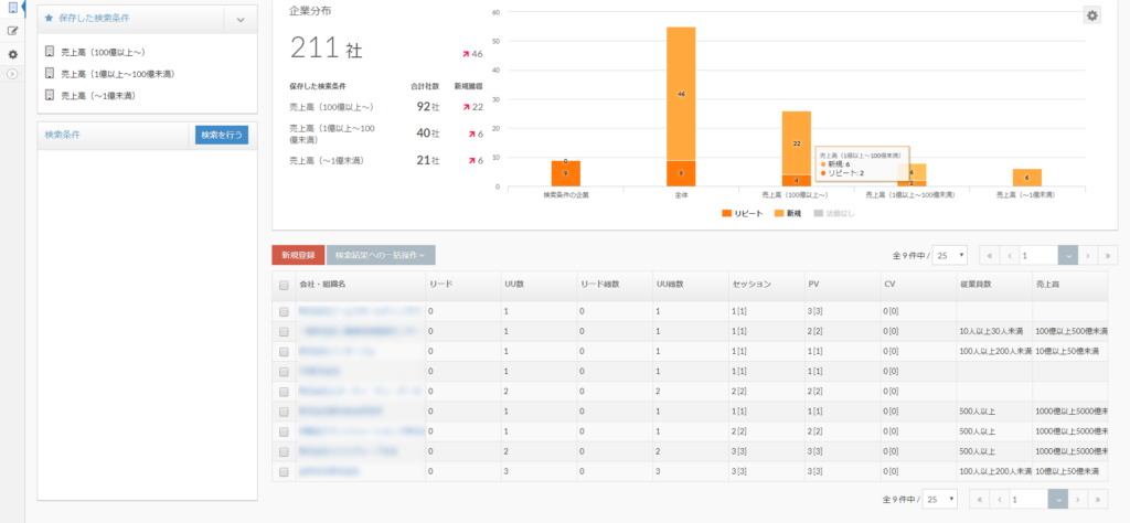 特に、会社や組織名が見れるだけでなく、その会社の規模や売上もわかりますので、どのような企業がアクセスしているのか?何に興味を持っているのか?がわかるようになっています。